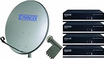 Schwaiger SAT8644 Digitale SAT Anlagen Set inkl 4 Receiver 4 Teilnehmer 80 cm FTA Quattro Switch LNB